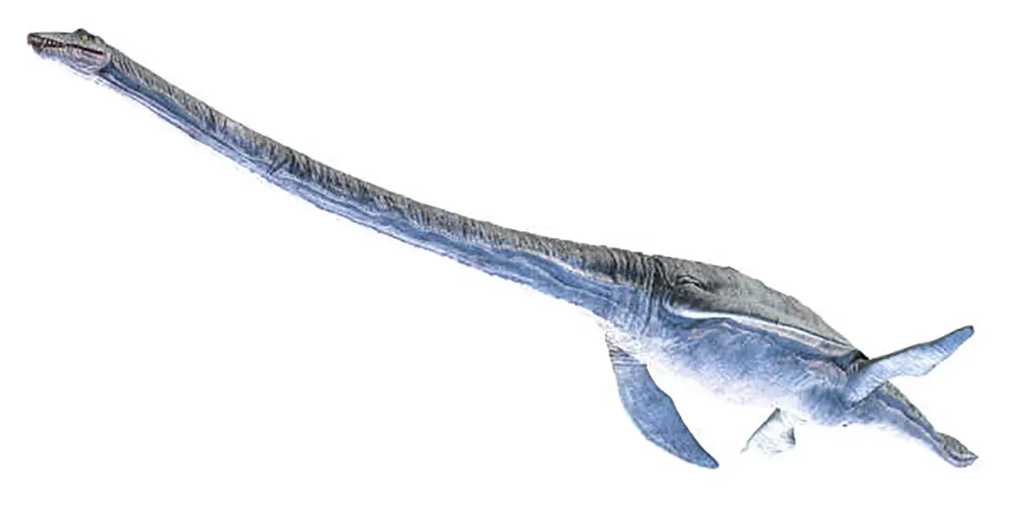 ウミガメのような胴体に、ヘビのように長い首を持つこの海生爬虫類は、全長14mにも及ぶ巨体で古代の海を支配していました。