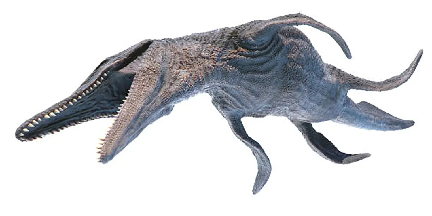 多くの魚類や一部の海棲爬虫類が「尾びれ」を左右に振って推進力を得るのとは対照的に、クロノサウルスはこの4本の巨大なヒレ脚を力強く動かすことで、水中を高速で自由に泳ぎ回っていたと考えられています。