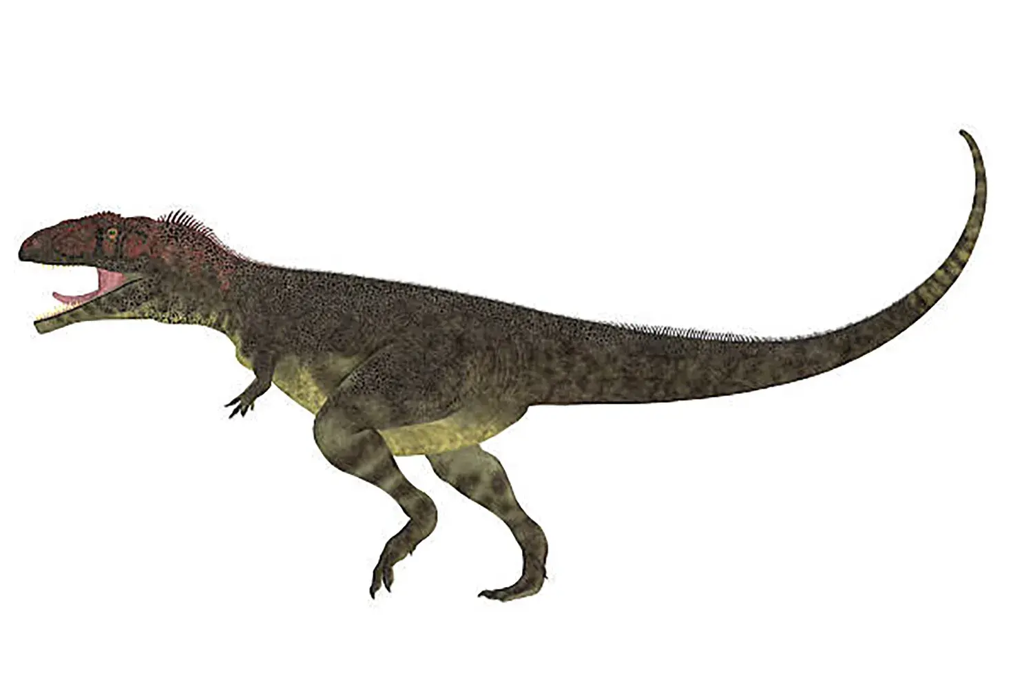 体の骨には大きな空洞が見られるため、体重は推定4トンほどで、ギガノトサウルスのような重量級の肉食恐竜よりは軽かったようです。