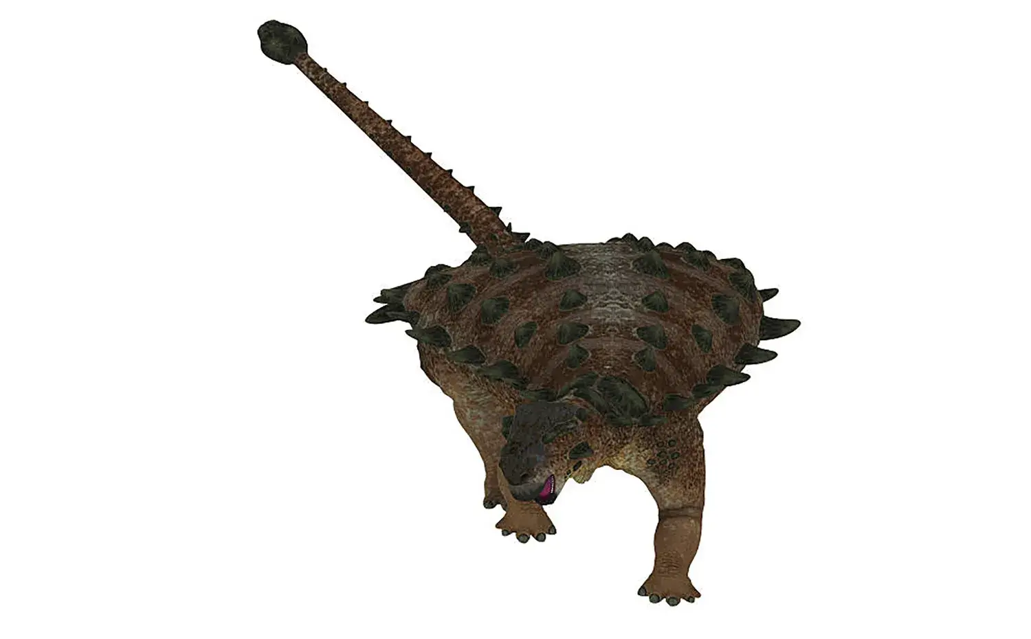 Possessed “sturdy armor (osteoderms) covering its back” and a “club (tail club/hammer) at the tip of its tail”